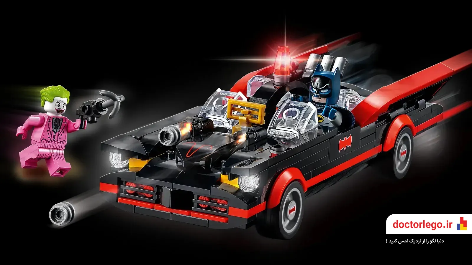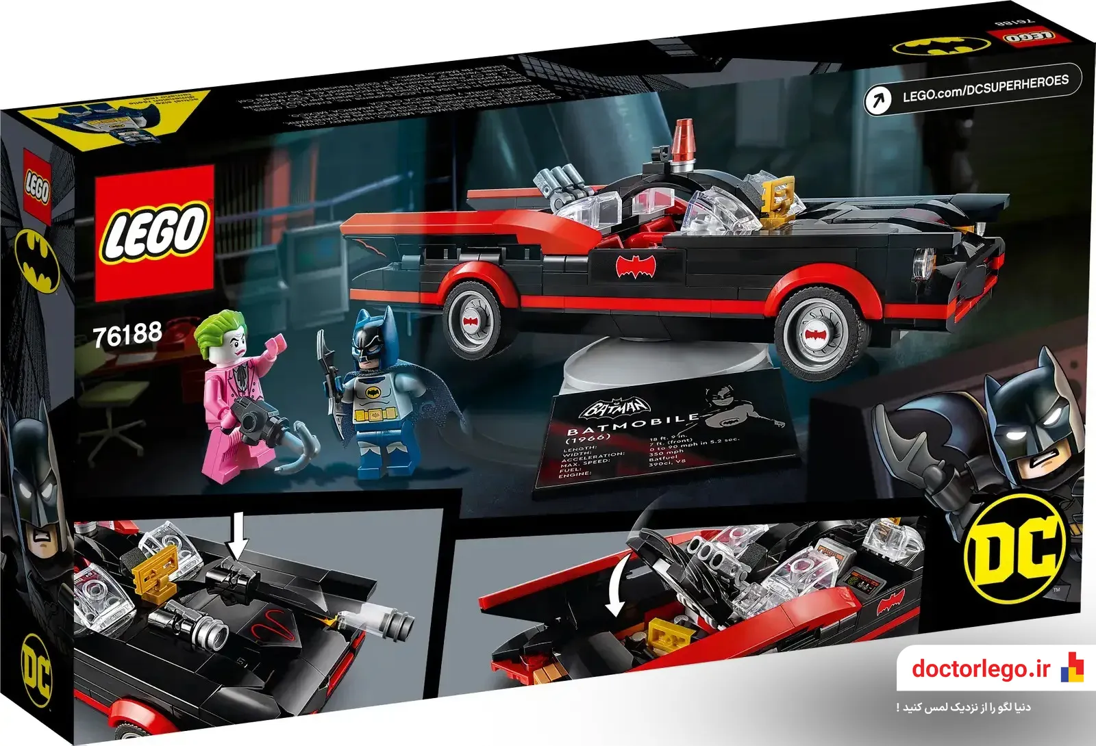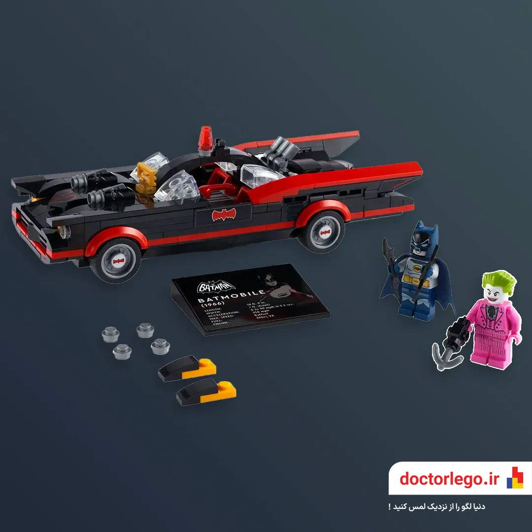 •۲ مینیفیگور فوقالعاده: همراه این بتموبیل کلاسیک، بتمن و جوکر، دو مینیفیگور با استایل کلاسیک سریال دهه 60، هم آمادهی نبرد هستند! بتمن همیشه آمادهی عدالتخواهی، و جوکر هم با اون خندههای شیطانی و نقشههای شیطنتآمیزش در کمینه!