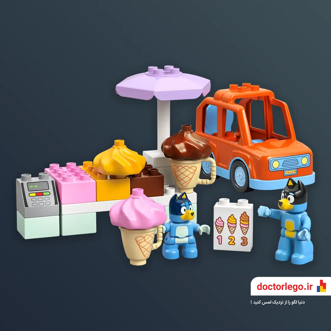 توی این ست بامزه، Bluey و Bingo با یه ماشین بستنیرنگ، راهی ساحل شدن تا همه رو خوشحال کنن. ماشین بستنی یه پنجرهی فروش داره، پر از قیفهای رنگی و بستنیهای خوشمزه که فقط منتظرن تا سرو بشن!