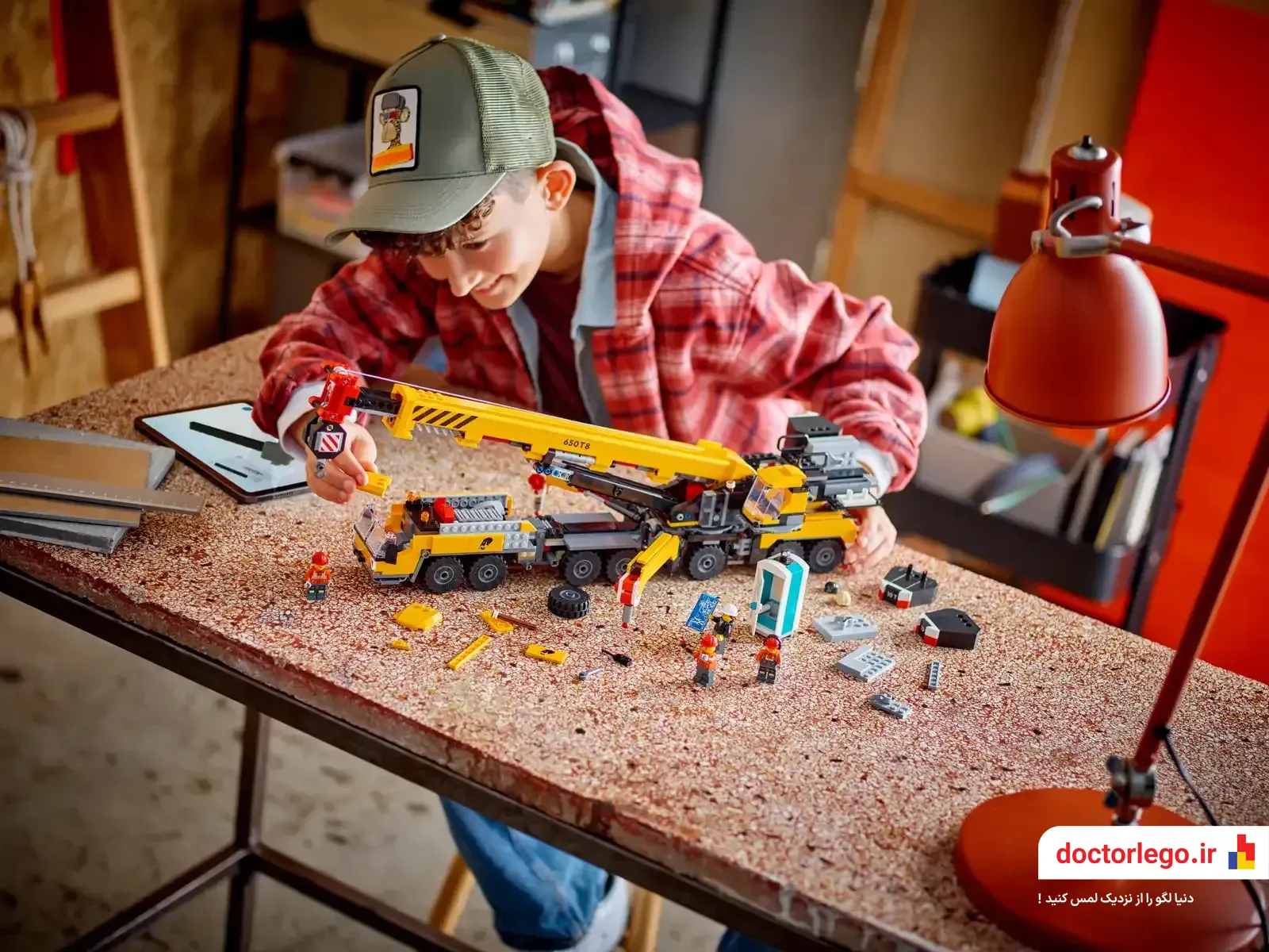 با لگو جرثقیل زرد Yellow Mobile Construction Crane 60409، کنترل یکی از قدرتمندترین ماشین‌آلات ساختمانی رو به دست بگیر—یک جرثقیل سیار که می‌تونه بارهای سنگین رو بلند کنه و به ارتفاع برسونه، درست مثل نمونه واقعی!