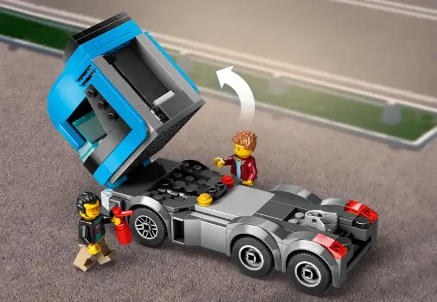 این ست شامل مینیفیگور راننده تریلی و دو راننده اسپرتکار هست که میتونی برای هر کدوم یک داستان کامل بسازی—از آمادهسازی برای مسابقه تا جشن گرفتن بعد از برد.