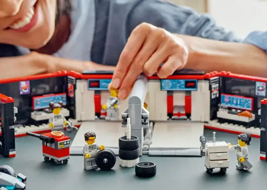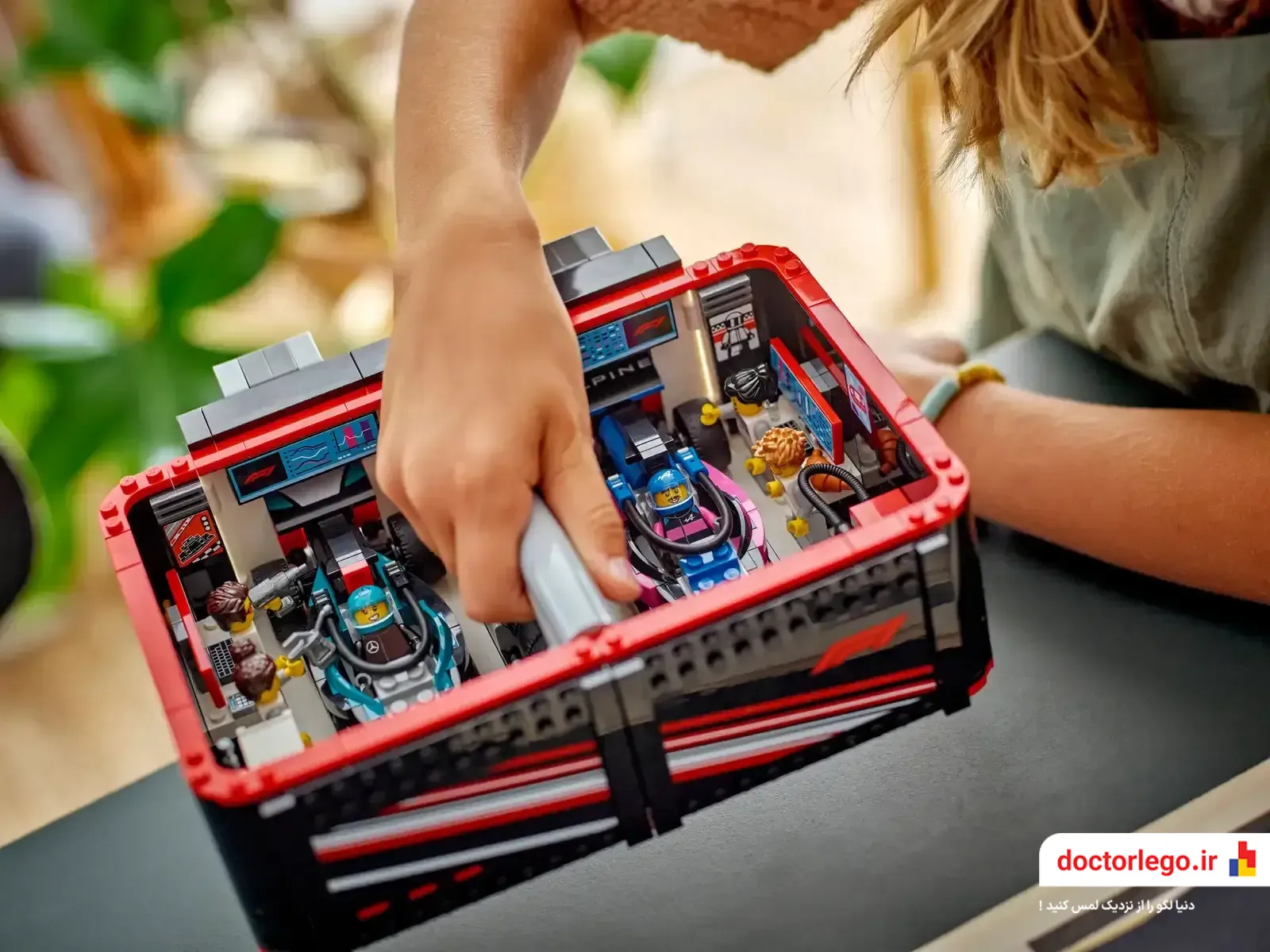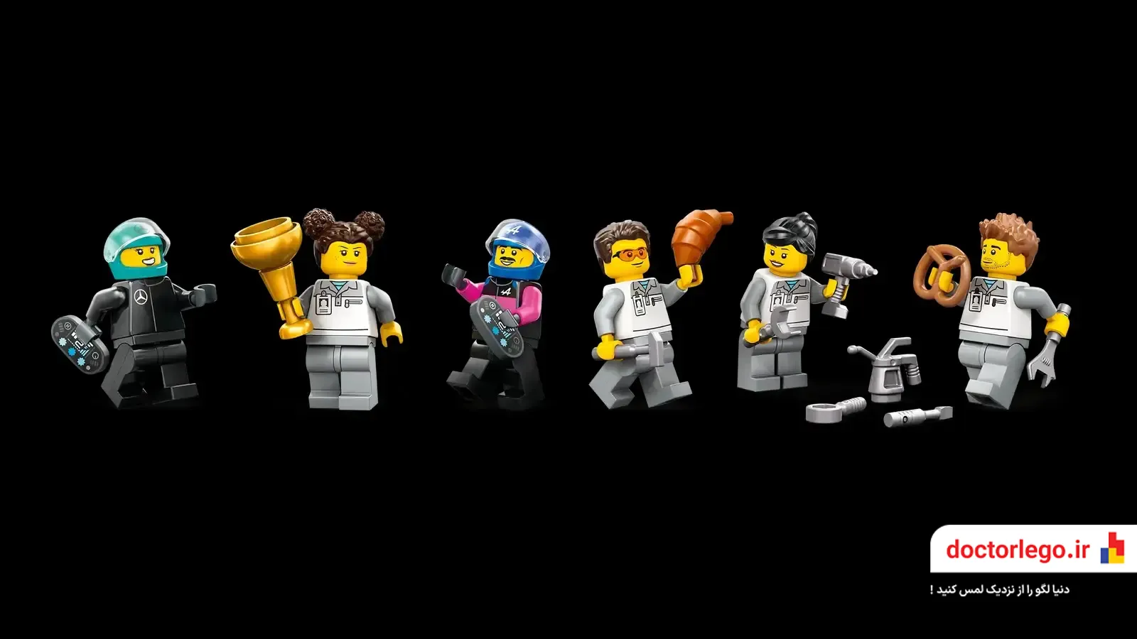 مینی‌فیگورهای راننده با کلاه ایمنی مخصوص و مکانیک‌های کاربلد با لباس تیمی، فضای واقعی یک روز مسابقه رو کامل می‌کنن.
