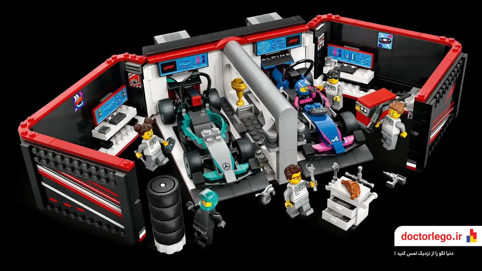 🏁🔧 جایی که سرعت متولد میشه و قهرمان‌ها آماده میشن با لگو گاراژ فرمول یک F1® Garage & Mercedes-AMG & Alpine Cars 60444!