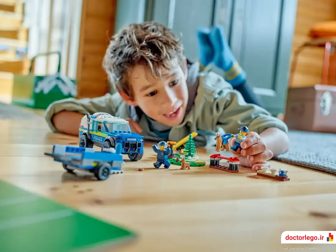 این ست لگو یه کامیون پرجزئیاته که همه‌چیز لازم برای تمرین سگ‌های پلیسی رو همراه داره. از وسایل مخصوص آموزش گرفته تا فضای داخل کامیون، همه‌چی جوری طراحی شده که حس واقعی بودن رو منتقل کنه. وقتی شروع به ساختنش می‌کنی، انگار واقعاً داری یه پایگاه آموزشی سگ‌های پلیس رو آماده می‌کنی.