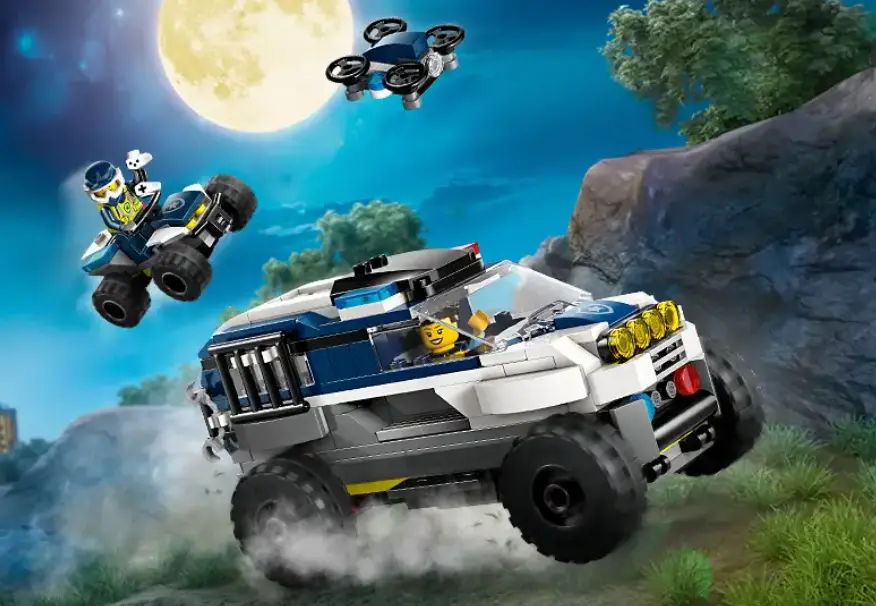 با لگو ماشین پلیس آفرود Off-Road Police Car Chase 60449، وارد یک تعقیب‌وگریز پرهیجان شو—جایی که سرعت، مهارت و قدرت آفرود همه با هم ترکیب میشن تا عدالت اجرا بشه.