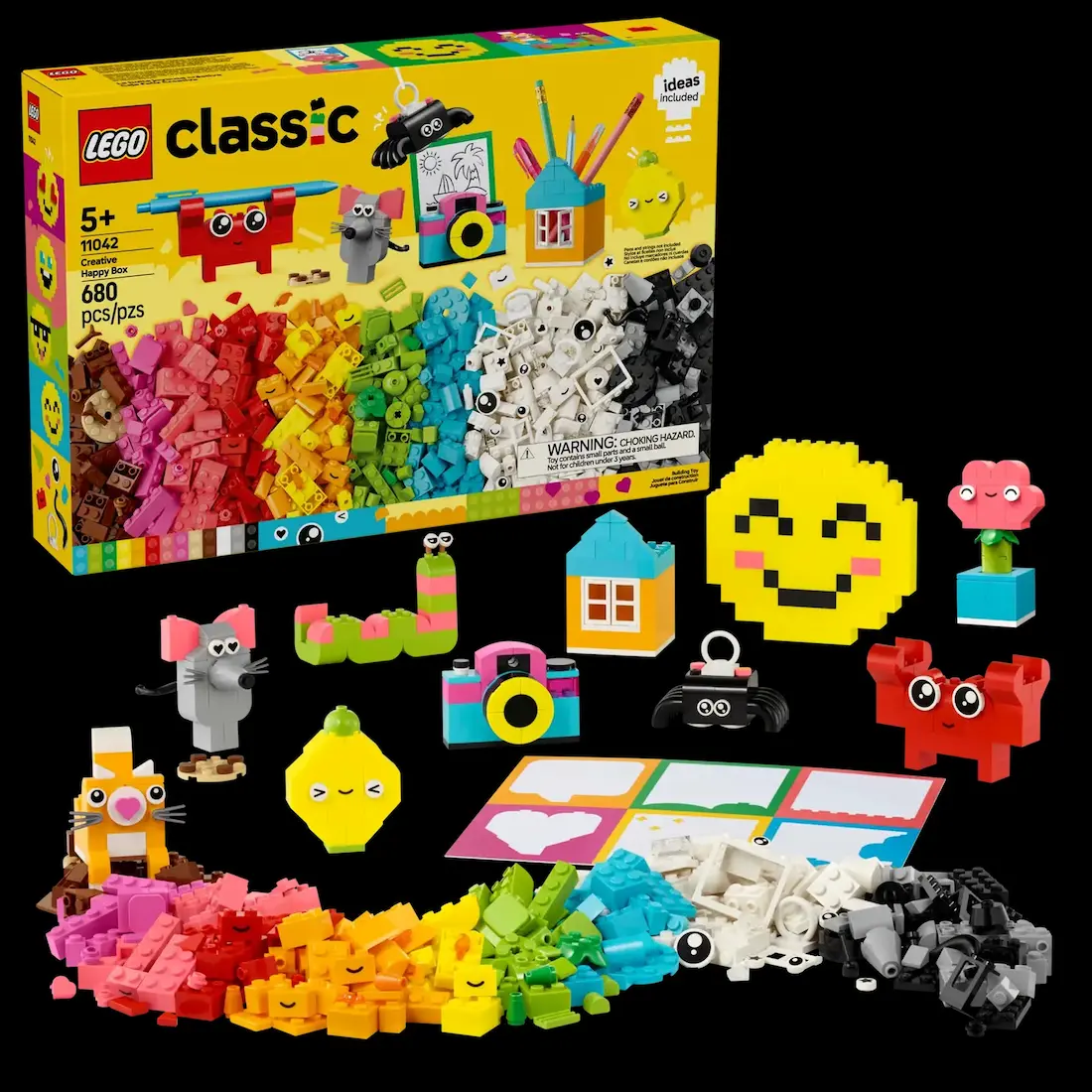 لگو کلاسیک Creative Happy Box 11042 یک مجموعهٔ رنگارنگ و انرژی‌بخش از سری لگو کلاسیک است که با 680 قطعه در رنگ‌های شاد، کودک را به ساخت مدل‌هایی دوست‌داشتنی مثل خرگوش بامزه، بستنی قیفی، ماشینک خندان و خیلی چیزهای دیگر دعوت می‌کند. این ست به همراه دفترچه ساخت 10 مدل پیشنهادی ارائه می‌شود و مناسب کودکان 5 سال به بالا است. طراحی شده برای پرورش خلاقیت، افزایش اعتمادبه‌نفس و ساختن دنیایی پُر از حال خوب!