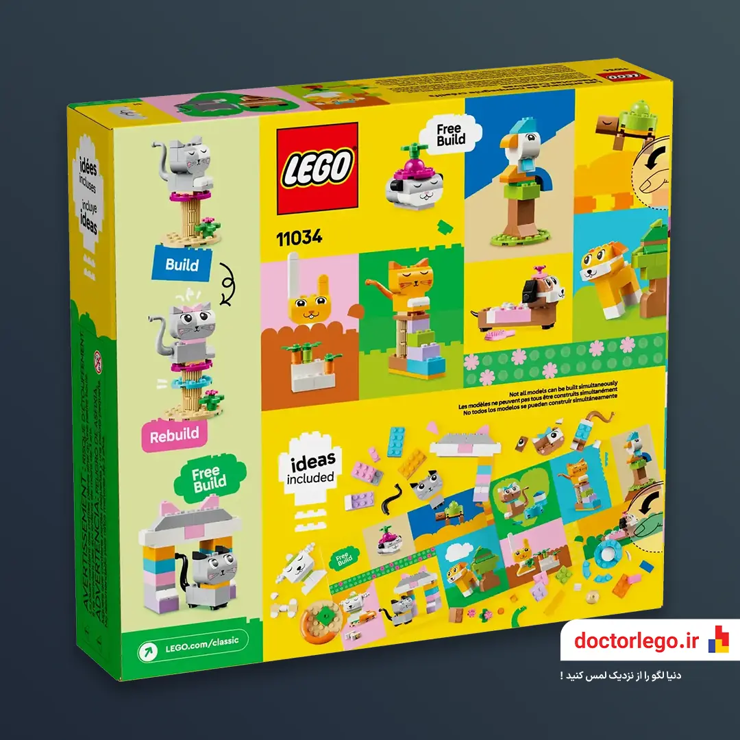 لگو کلاسیک حیوانات خانگی Creative Pets 11034 یک مجموعه‌ی رنگارنگ از سری لگو کلاسیک است که شامل 450 قطعه متنوع در رنگ‌ها و شکل‌های مناسب برای ساخت حیوانات خانگی مختلف مانند سگ، گربه، طوطی، همستر و خرگوش است.