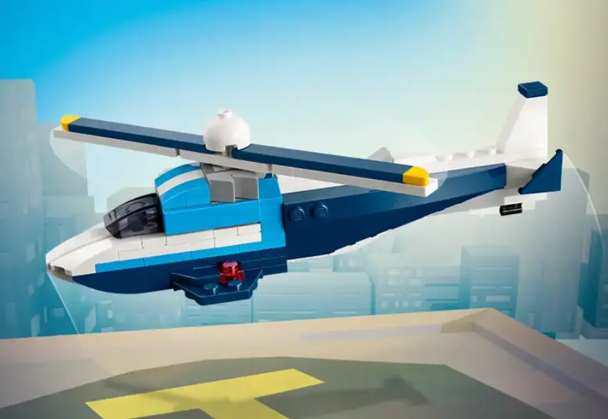 ولی اینجا دستت کاملاً بازه. چون این ست هم از سری ۳در۱ لِگوئه. یعنی میتونی همین قطعهها رو تبدیل کنی به یه هلیکوپتر سریع یا یه جت جالب با طراحی کاملاً متفاوت. هر سه تا مدل، یه حال متفاوت دارن – یکی نمایشی، یکی تاکتیکی، یکی اکتشافی. هرکدوم یه نوع داستان.