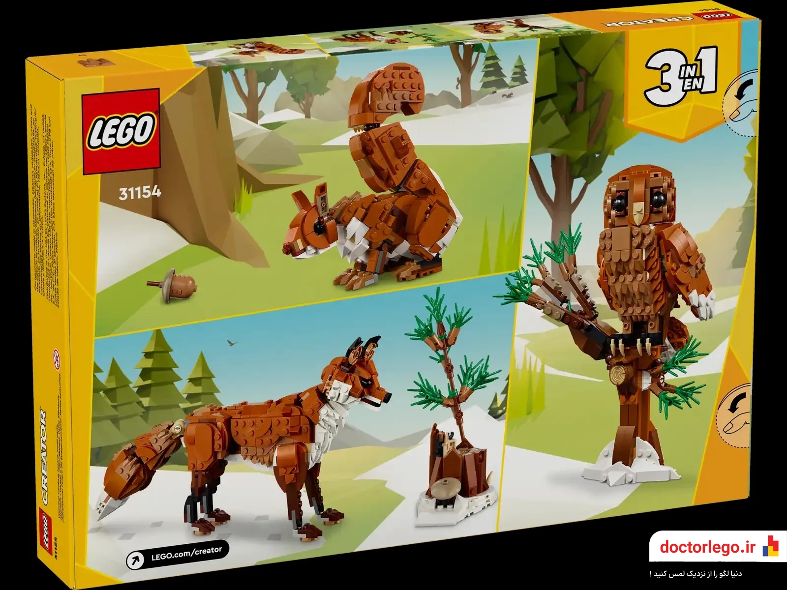 •طراحی سهدریک: این مجموعه به شما امکان میدهد که با استفاده از یک سری تکهها، سه حیوان مختلف بسازید؛ از روباه قرمز تا جغد و گوزن. هر طراحی با جزئیات دقیق و ویژگیهای مخصوص به خودش ساخته میشود و شما را به دنیایی از تنوع و خلاقیت میبرد.