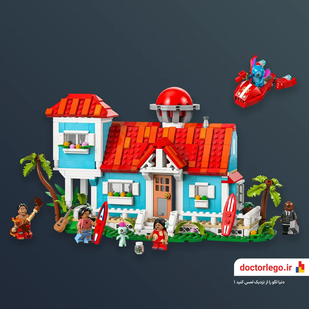 لگو استیچ Lilo and Stitch Beach House 43268 نه فقط یه خونه‌ی ساحلیه، بلکه یه دنیای کامل از حال‌و‌هوای گرمسیری، دوستی و لحظه‌های باارزشیه که باهاشون بزرگ شدیم. با این ست خاص، می‌تونی خاطرات انیمیشن محبوب دیزنی رو زنده کنی و کنار استیچ و لیلو وارد دنیایی بشی که با موج‌های دریا، گل‌های هیبیسکوس و صدای خنده پر شده.