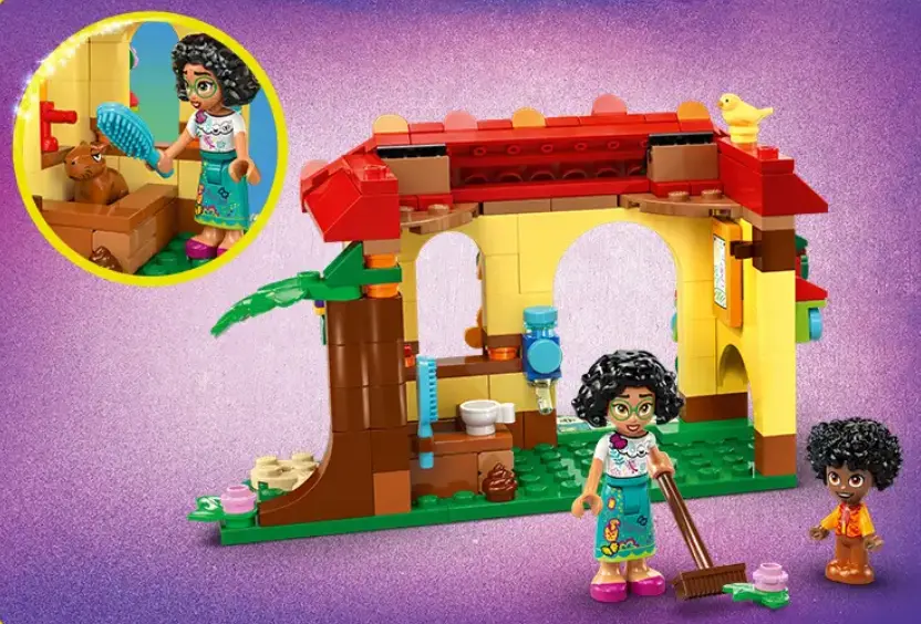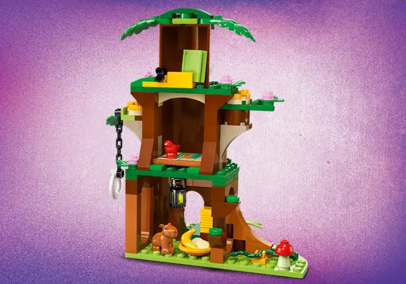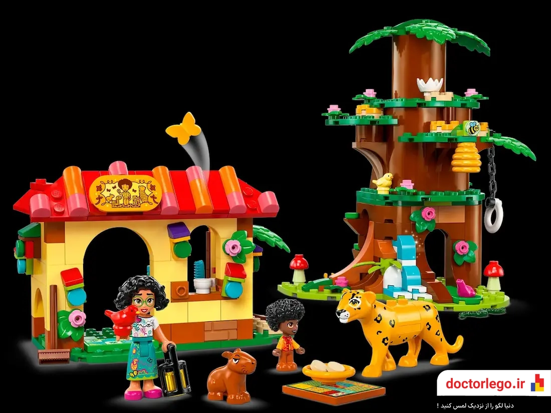 جزئیاتش قشنگه — پلهها، برگها، گلها، و حتی یه تاب رنگی که میتونی حیوونا رو روش بچرخونی. مینیفیگ آنتونیو هم با موهای فر و تیشرت زردش، دقیقاً همون بچهی مهربونیه که توی فیلم دیدی.