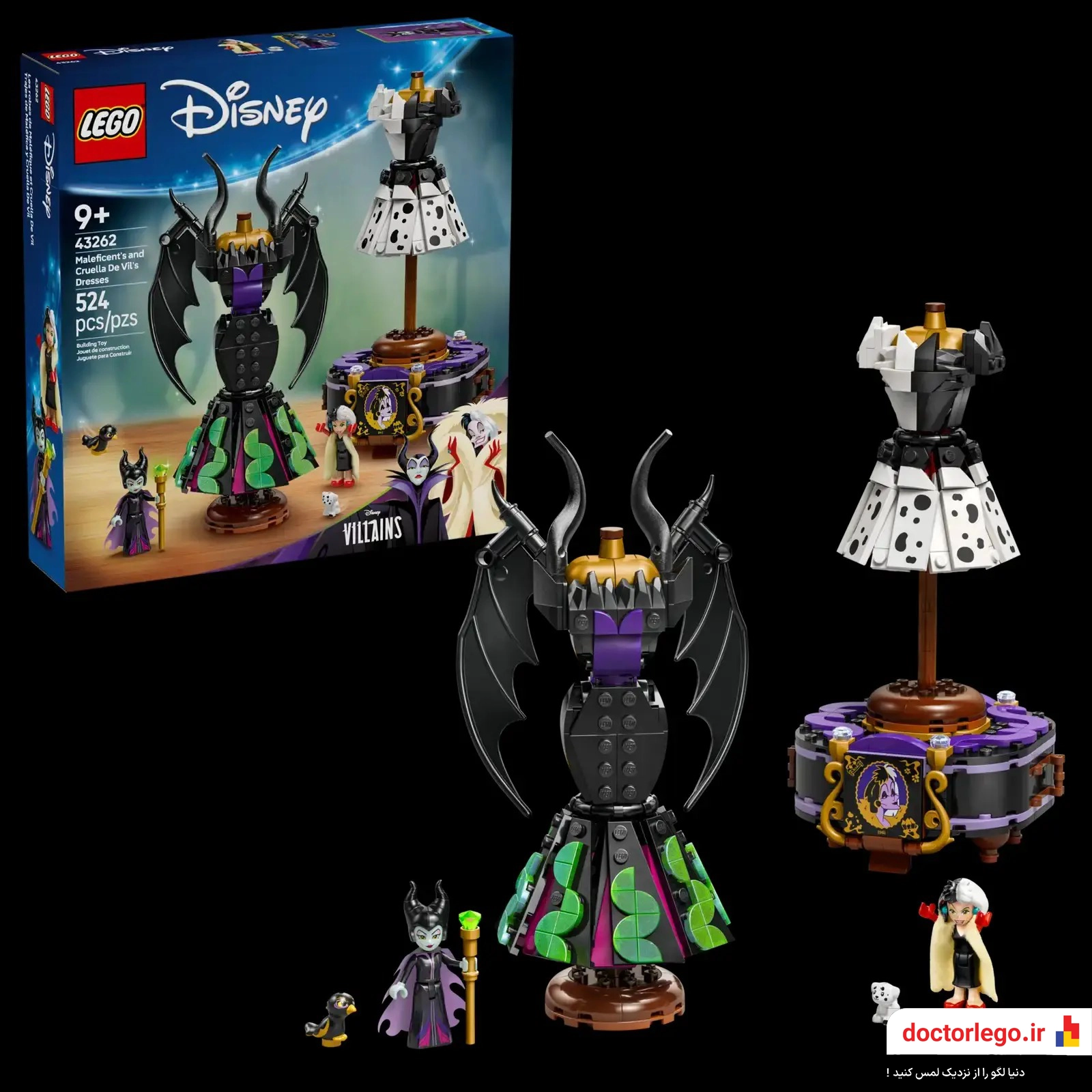با LEGO Disney Villains: Maleficent’s and Cruella De Vil’s Dresses (43262)، به دنیای مد تاریک و جذاب دیزنی قدم بگذار و شاهکارهای شرورانه را در خانهات بساز!