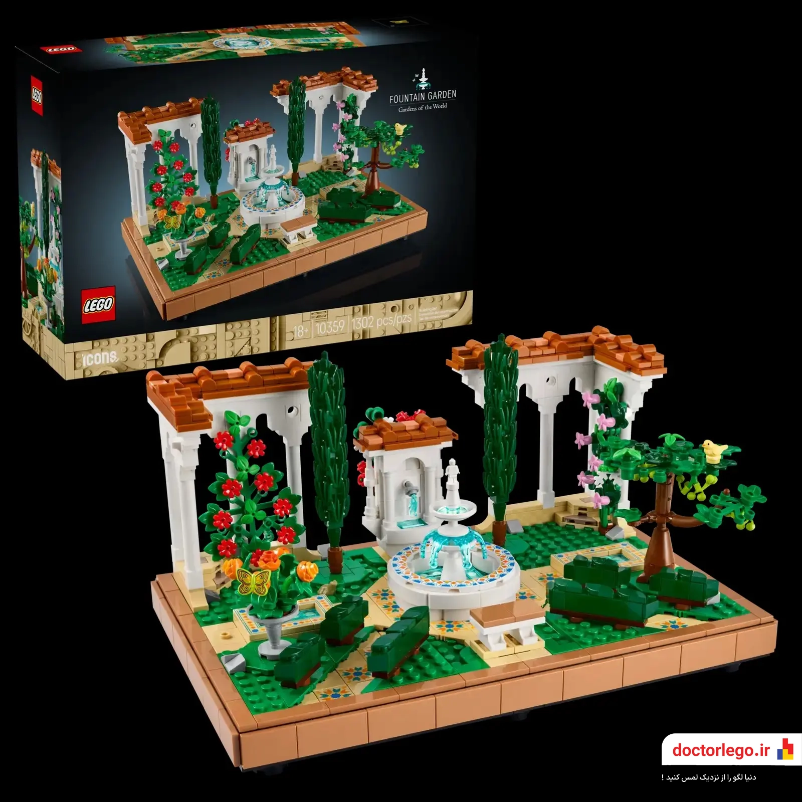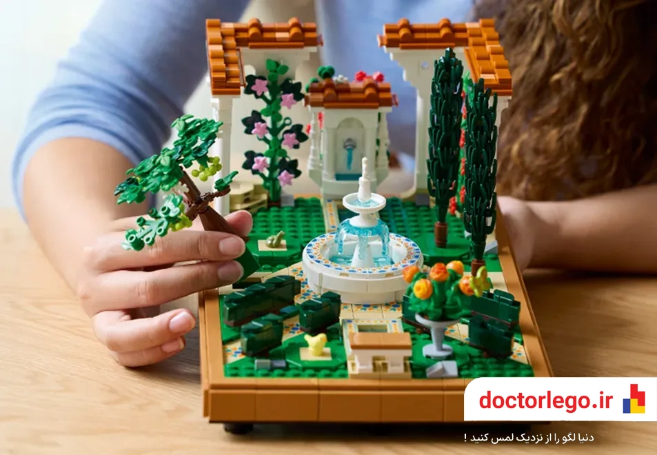 تصور کن که در میان یک باغ رویایی قدم میزنی، صدای آرامشبخش آب را میشنوی و از زیبایی گلهای رنگارنگ لذت میبری. LEGO Fountain Garden (10359) این تجربه را برایت به ارمغان میآورد. میتوانی این باغ را به عنوان یک دکور زیبا استفاده کنی یا آن را با دیگر مجموعههای لگو ترکیب کرده و فضای بزرگتری خلق کنی.