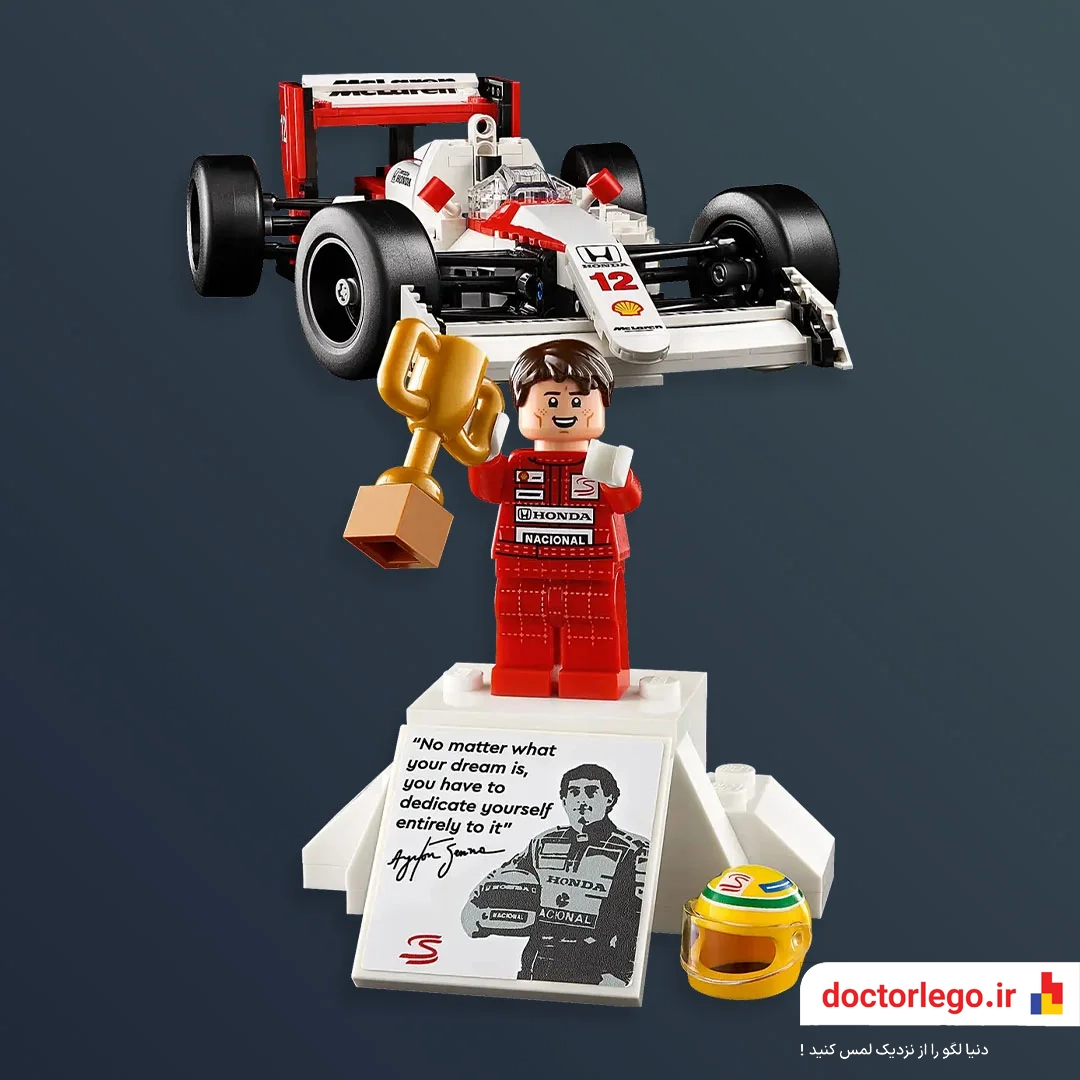 •مدل دقیق McLaren MP4/4: این مجموعه مدل دقیقی از McLaren MP4/4 را بازسازی میکند، خودرویی که در فصل 1988 مسابقات فرمول 1 تحت رهبری Ayrton Senna و Alain Prost به موفقیتهای بزرگی دست یافت. طراحی مدل به گونهای است که تمامی ویژگیهای اصلی این خودرو، از جمله بدنهی باریک و بالهای طراحی شده برای کاهش مقاومت هوا، به خوبی به نمایش گذاشته شده است.