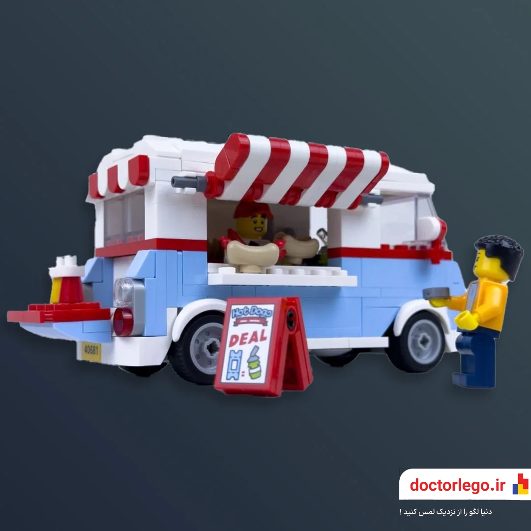 لگو با ست کامیون غذای کلاسیک (Retro Food Truck) شماره 40681 شما رو به دنیای پرشور کامیون‌های غذای خیابانی می‌بره. این کامیون خوش‌رنگ و جذاب، با جزئیاتی مثل وسایل آشپزی و منوی خوشمزه‌اش، آماده‌ی سرو برگرها و هات‌داگ‌های خوش‌طعم هست.