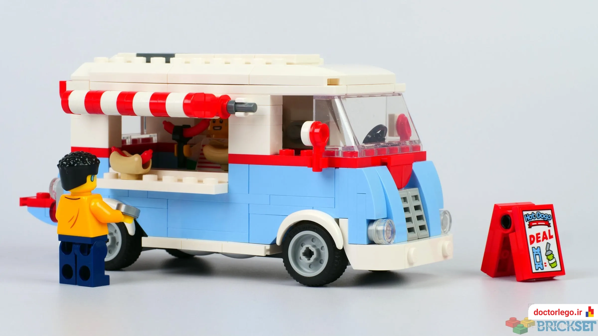 این کامیون غذای کلاسیک با دقت و جزئیات دقیق طراحی شده، از پنجره‌های بزرگ سرو غذا گرفته تا منوی جذابی که بیرونش قرار داره. همه چیز تو این ست به شکلی طراحی شده که حس واقعی یه کامیون غذای کلاسیک رو بهتون میده، با کلی وسایل آشپزی و غذای خوشمزه مثل برگرها و هات‌داگ‌ها که می‌تونید داخلش درست کنید. حتی میز و صندلی‌های کوچیک بیرون کامیون هم وجود داره تا مشتری‌هاش بتونن غذاشون رو تو فضای باز میل کنن!