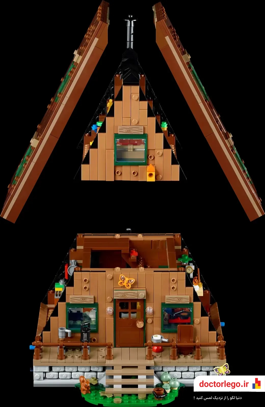این LEGO با طراحی کابین A-Frame، ساختاری زیبا و شیک دارد که به شکلی واقع‌گرایانه جزئیات معماری و دکوراسیون آن را بازسازی کرده است. از سقف مثلثی گرفته تا نمای بیرونی چوبی، همه چیز به‌طور دقیق و دلپذیر ساخته شده است.