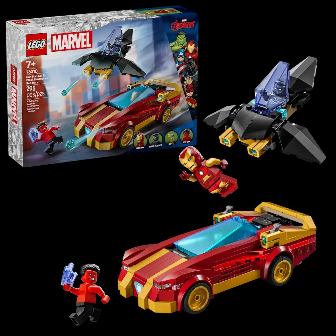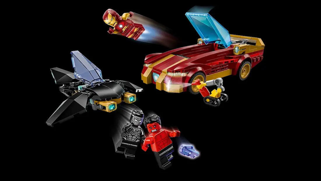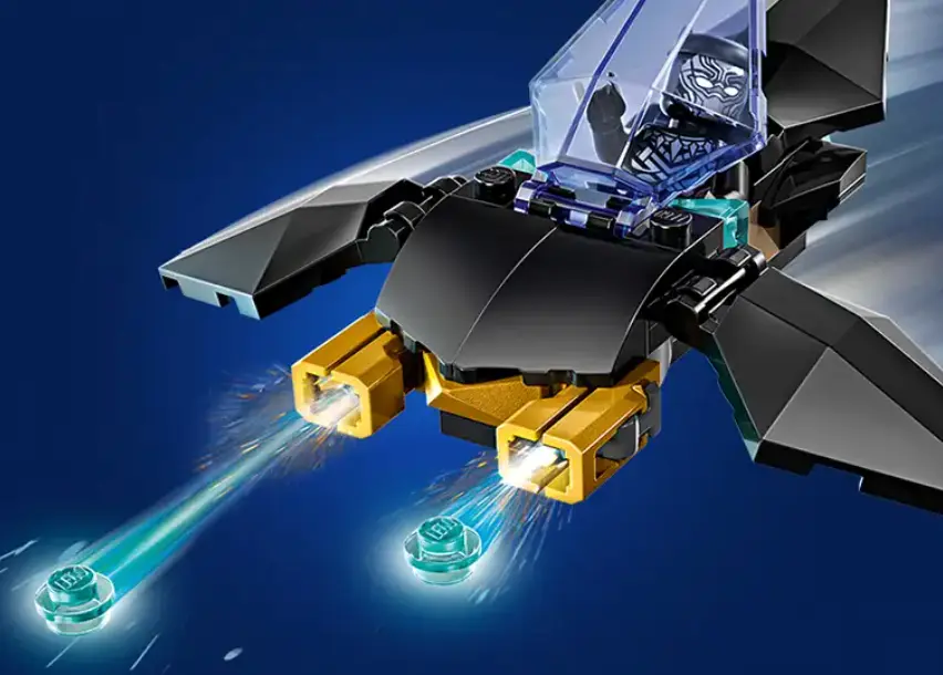 در کنار خودرو، فیگور بلکپنتر با ظاهری زیبا و دقیق قرار دارد. طراحی لباس سیاه براق و المانهای طلایی روی آن، قدرت و وقار این شخصیت محبوب را به خوبی نشان میدهد. کودکان میتوانند داستانهایی بسازند که در آن بلکپنتر در کنار آیرونمن برای دفاع از عدالت مبارزه میکند. حضور این شخصیت تنوع بیشتری به بازیها اضافه کرده و فرصتهای تازهای برای تخیل فراهم میآورد.