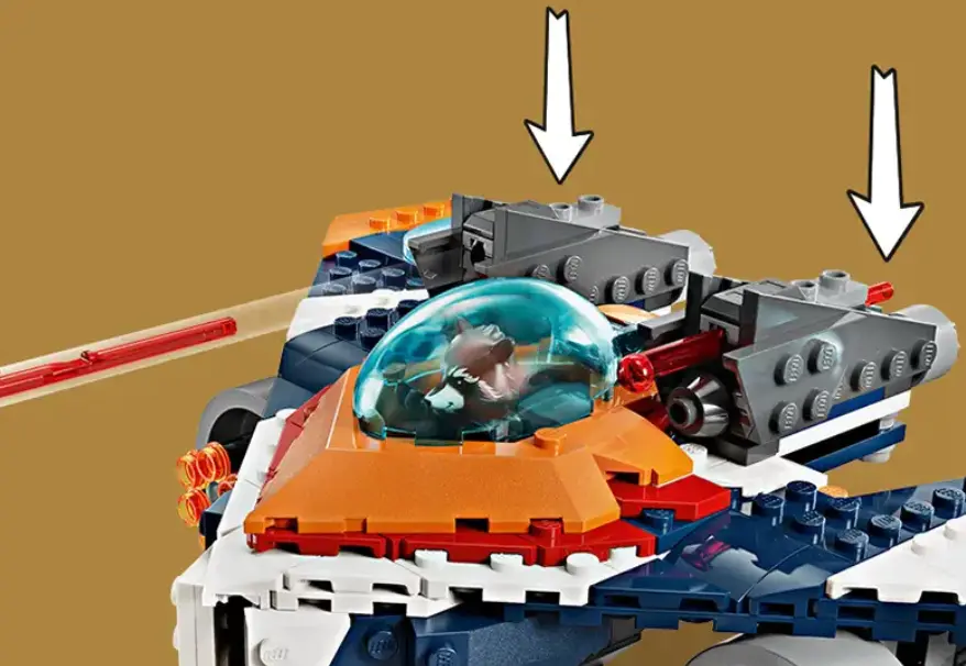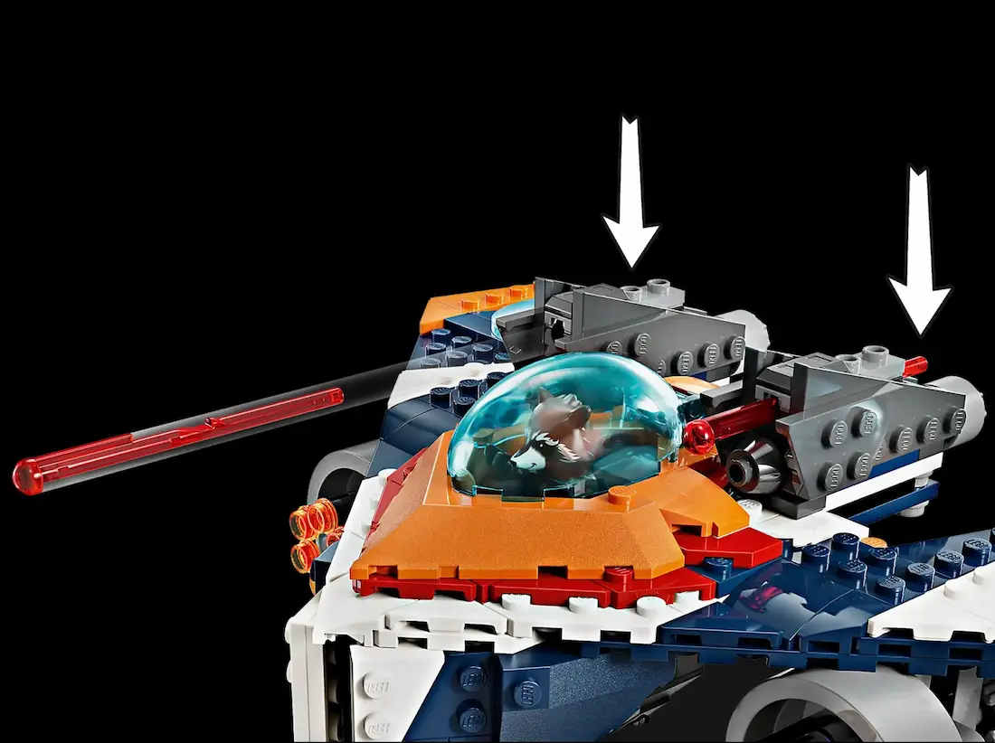 سفینهی Warbird مجهز به تیراندازهای قابلپرتاب است که لحظات بازی را هیجانانگیزتر میکنند. بازیکنان میتوانند با فشار دادن مکانیزمها، موشکهای کوچک را شلیک کرده و رونان را در میانهی میدان نبرد به چالش بکشند. علاوه بر این، کاکپیت طراحیشده برای راکت، بهراحتی فیگور کوچک او را در خود جای میدهد و تجربهی پرواز در فضا را زنده میکند.