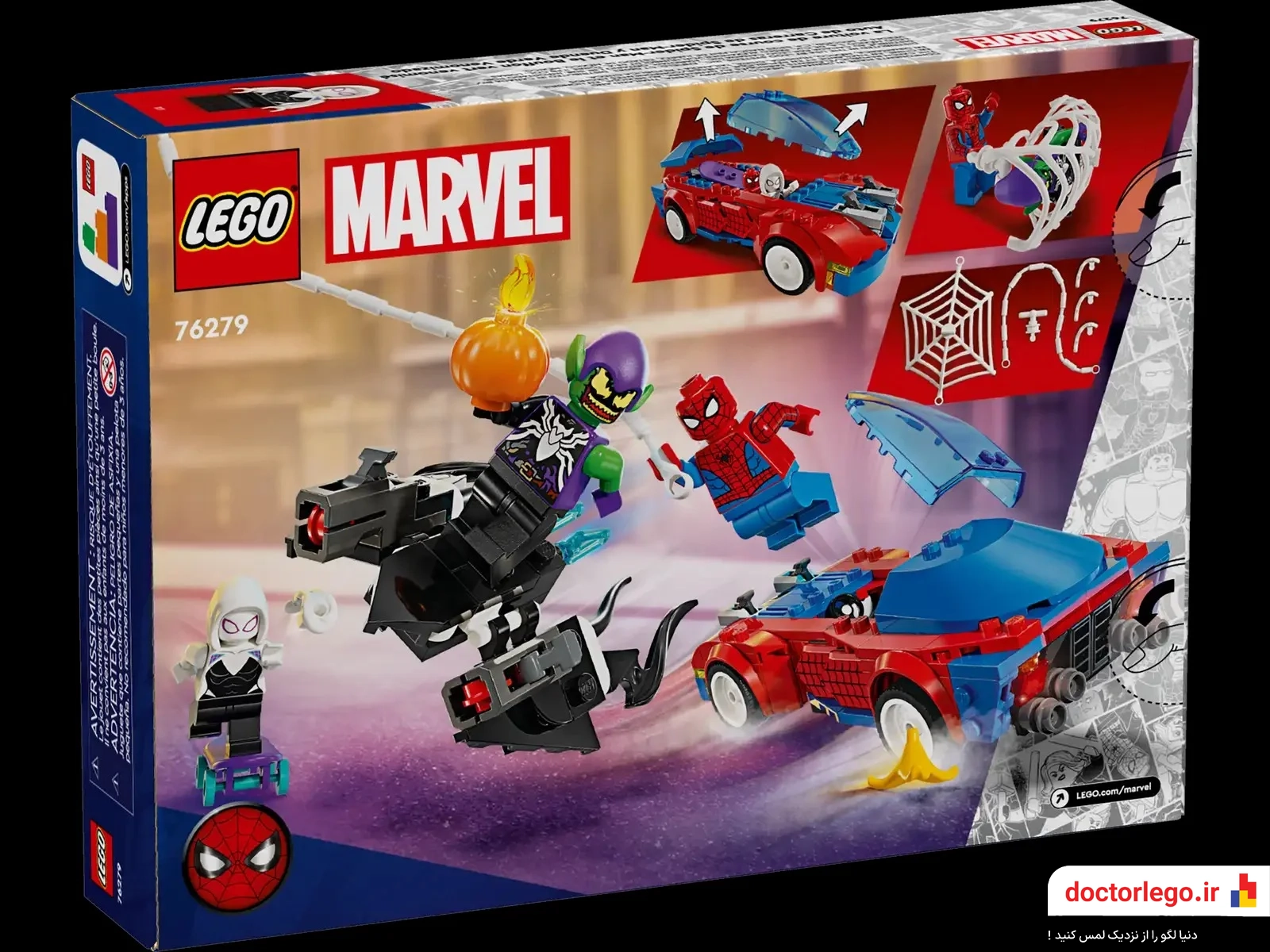 مجموعه لگو Spider-Man race car Venom Green Goblin 76279 با 227 قطعه یک ماجراجویی اکشن از دنیای اسپایدرمن را به شما ارائه می‌دهد. این لگو کودکانه شامل فیگورهای اسپایدرمن، ونوم و گرین گابلین است، به همراه ماشین مخصوص اسپایدرمن که برای تعقیب و مبارزه با ابرشرورها طراحی شده است. این ماشین با چرخ‌های بزرگ و طراحی اسپرت، آماده‌ی هر نبردی است و به اسپایدرمن اجازه می‌دهد تا در خیابان‌ها برای نابود کردن نقشه‌های شرورانه‌ی ونوم و گرین گابلین آماده باشد. طراحی این مجموعه لگو اسپایدرمن به‌گونه‌ای است که برای کودکان به عنوان یک ابزار بازی عالی و برای کلکسیونرها به عنوان یک مدل جذاب کاربرد دارد.