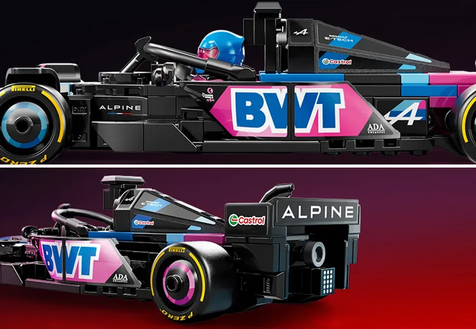 با این لگو، میتوانی تکتک قطعات یک خودروی فرمول 1 واقعی را سرهم کنی، از طراحی آیرودینامیک بدنه گرفته تا اسپویلر عقب و ورودیهای هوا که حس واقعی یک ماشین مسابقهای را به تو منتقل میکند. رنگبندی زیبای BWT Alpine با ترکیب آبی و صورتی، ظاهری فوقالعاده به این مدل داده و آن را به یک شاهکار در کلکسیون ماشینهای مسابقهای لگو تبدیل کرده است.