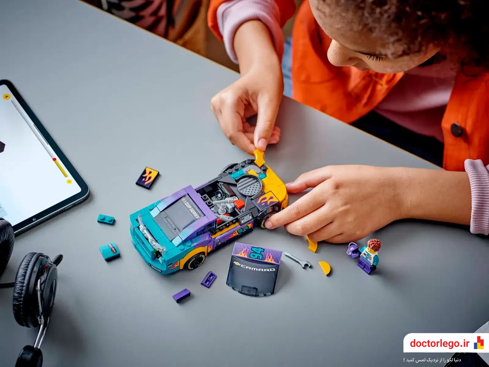 •طراحی منحصربهفرد و آیرودینامیک: Chevrolet Camaro ZL1 با بدنهای منحصر بهفرد و آیرودینامیک، آماده است تا در هر پیستی با نهایت سرعت و دقت حرکت کند. این LEGO تمامی جزئیات خاص و جذاب این خودرو، از اسپویلر جلو و عقب گرفته تا جزئیات بدنه و هواکشها را بهدقت بازسازی کرده است.