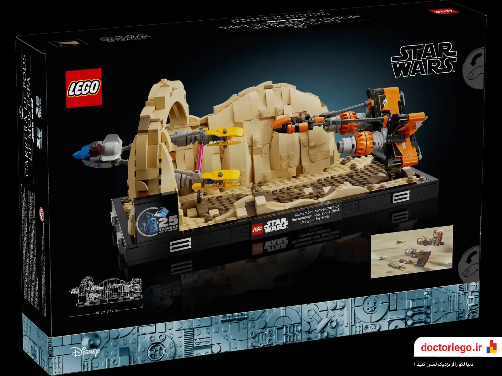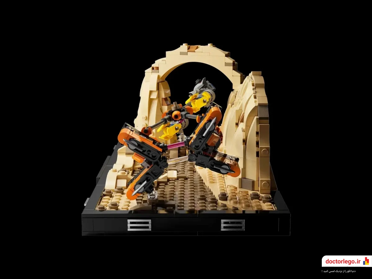 این دیورامای شگفتانگیز با طراحی دقیق، شامل پادریسرهای آناکین اسکایواکر و سبالبا است که با فاصله کمی از سطح زمین به پرواز درآمدهاند. با اضافه شدن جزئیات دقیق مانند صخرههای بیابانی تاتویین و پلاک مخصوص با نقلقولی از کویی گان جین، این مجموعه نهتنها یک اسباببازی، بلکه یک قطعه هنری از دنیای Star Wars است.