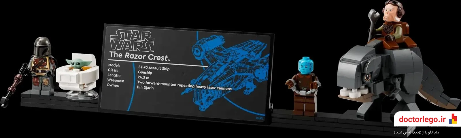 با بیش از 6000 قطعه، این مدل یک شاهکار واقعی است. از کابین خلبان جداشدنی و محفظه بار با فضای داخلی پرجزئیات گرفته تا بخش‌های متحرک، همه‌چیز برای خلق ماجراجویی‌های ماندگار طراحی شده است. همراه این مجموعه، چندین مینی‌فیگور محبوب مانند دین جارین (ماندالوری)، گروگو (بیبی یودا)، کوییل و یک بلورگ نیز وجود دارد که بازی و نمایش این سفینه را جذاب‌تر می‌کند.