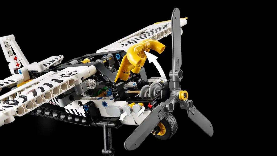 مدل 42198 از سری تکنیک یه ساختنی فوق‌العاده‌ برای علاقه‌مندهای پرواز و مکانیزمه. بدنه‌ی هواپیما با رنگ نارنجی چشم‌گیر، بال‌هایی که محکم و قابل تنظیم‌ان، و چرخ‌های بزرگ برای فرود روی مسیرهای ناصاف طراحی شده. حتی ملخ جلویی با چرخوندن دنده‌ها می‌چرخه — یه حس واقعی از پرواز مکانیکی، بدون نیاز به باتری یا اپلیکیشن!