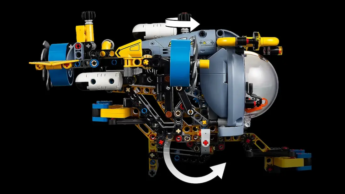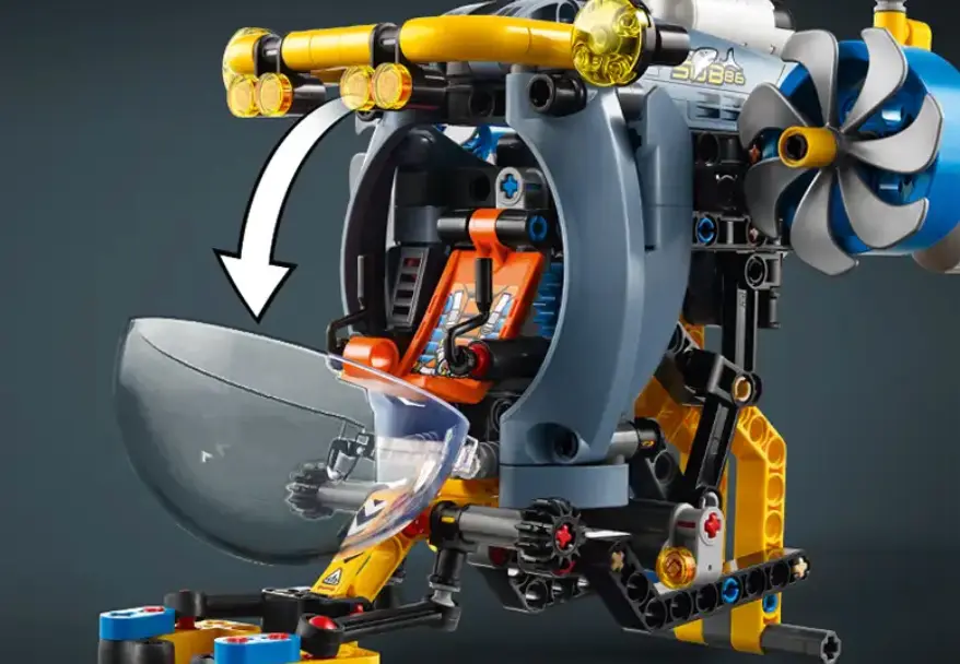این مدل از سری لِگو تکنیک با 413 قطعه طراحی شده و یکی از دقیقترین بازسازیهای وسایل نقلیه اکتشافی زیر آب به حساب میاد. بازوهای مکانیکی متحرک برای نمونهبرداری، ملخهای چرخان، بازوی گیرهای، محفظهی شفاف خلبان، و حتی یک زیروبُت کوچک که از بدنه جدا میشه. طراحی جمعوجور ولی پُرجزئیاتش برای بچههای ۱۱ سال به بالا مناسبه، و هم برای بازی و هم برای کلکسیون ایدهآله.