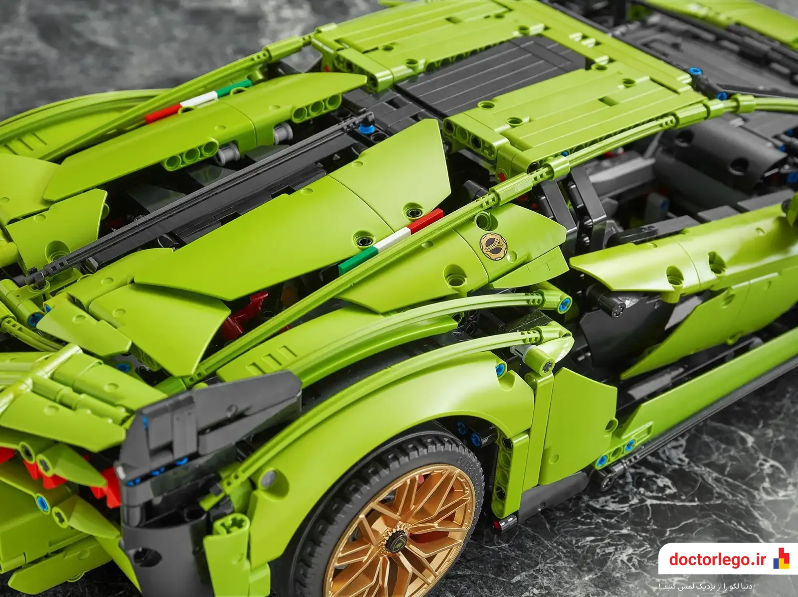 رنگ سبز متمایز این لامبورگینی با رینگ های طلایی، جلوه‌ای خاص و لوکس به مدل می‌دهد. این ترکیب رنگ جذاب، این LEGO را به یکی از زیباترین و جذاب‌ترین محصولات کلکسیونی تبدیل می‌کند.