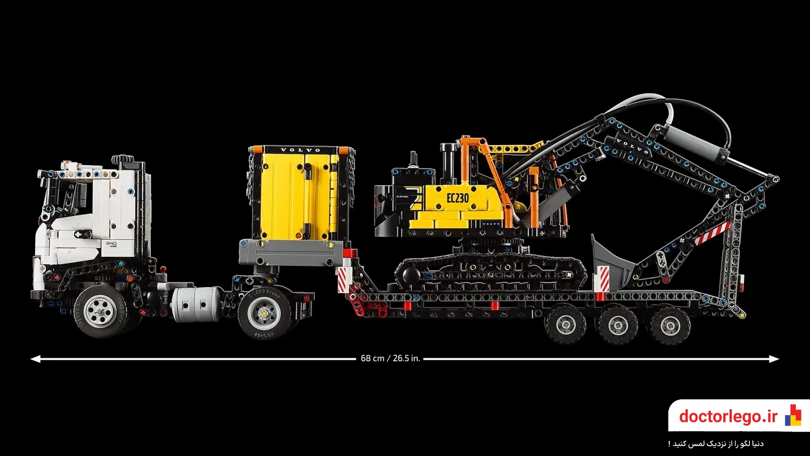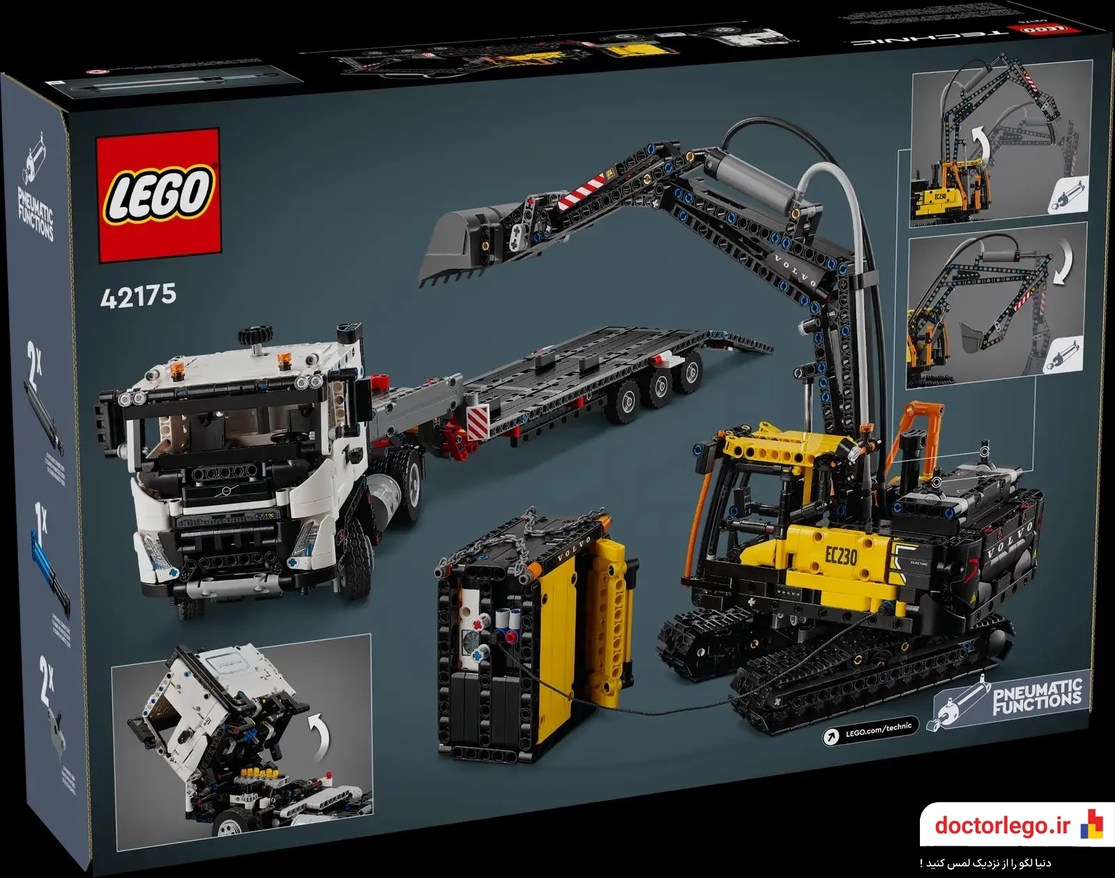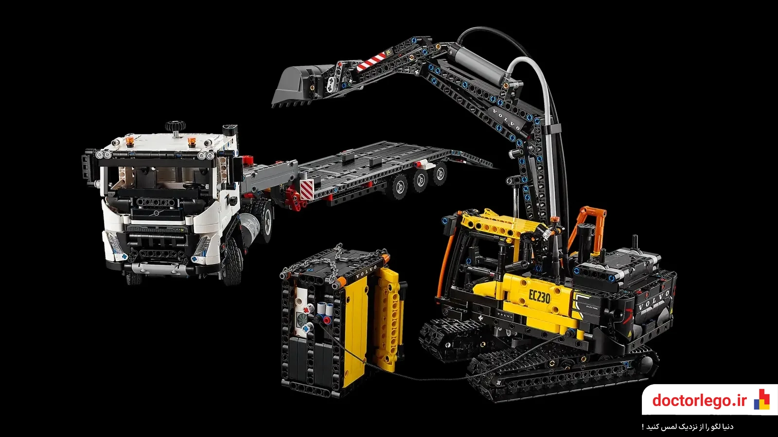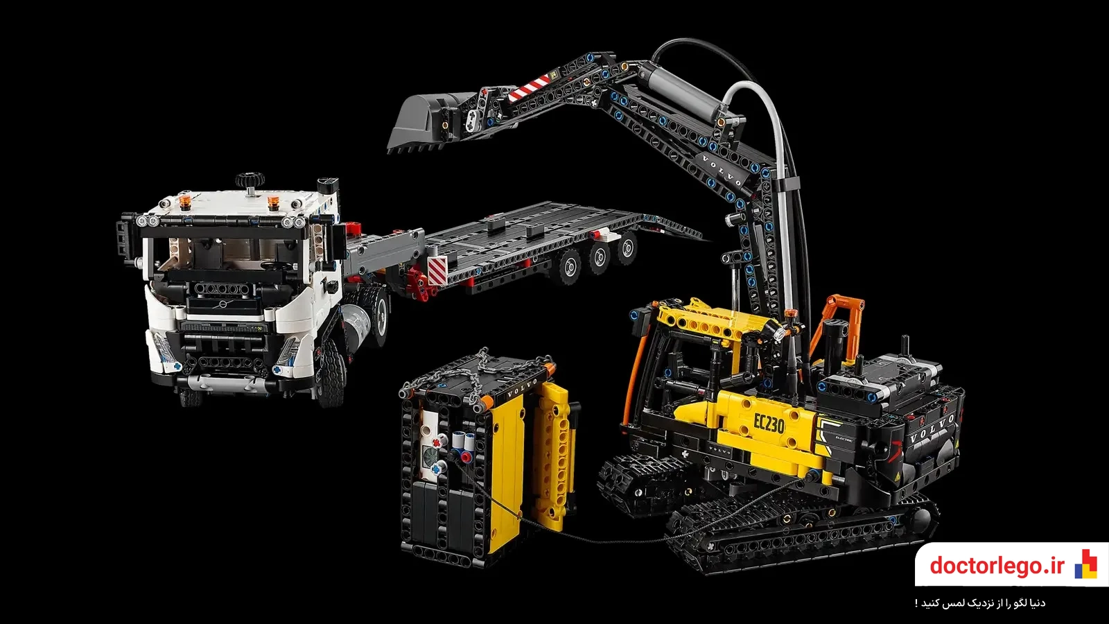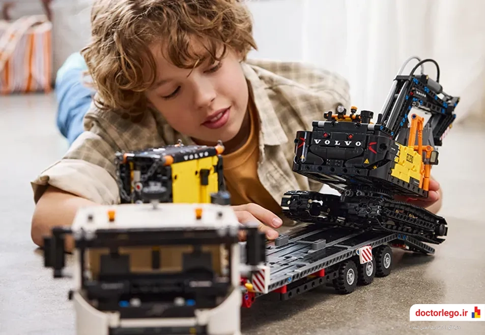 •دو ماشین قدرتمند در یک مجموعه: این ست شامل دو وسیله نقلیه حرفهای و کاربردی است؛ یک کامیون ولوو FMX که برای حمل و نقل سنگین ساخته شده و یک بیل مکانیکی الکتریکی EC230 که با دقت و کارایی بالا، خاکبرداری و جابجایی مواد را انجام میدهد.