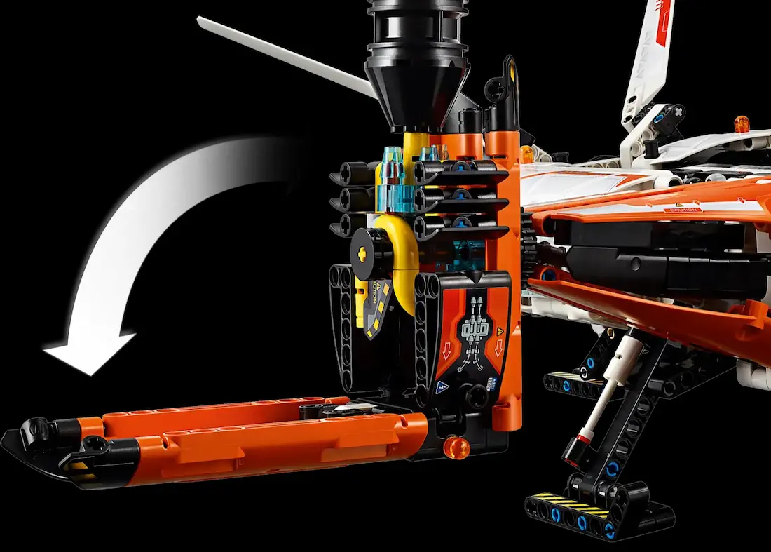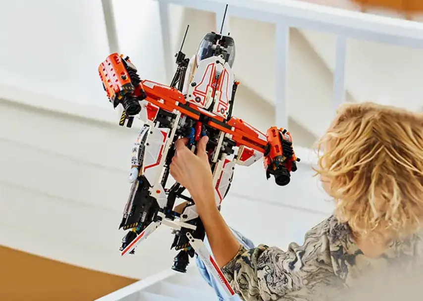 این مدل لگو از سری تکنیک با 1365 قطعه طراحی شده؛ یه سازه عظیم که هم ساختنش لذتبخشه، هم بعدش حس یه فضاپیمای واقعی رو منتقل میکنه. بدنهی پر جزئیات، بالهای عمودی متحرک، قسمت بار قابل دسترس، و البته چرخهایی که جمع میشن، باعث میشن انگار واقعاً آمادهٔ برخاستی.