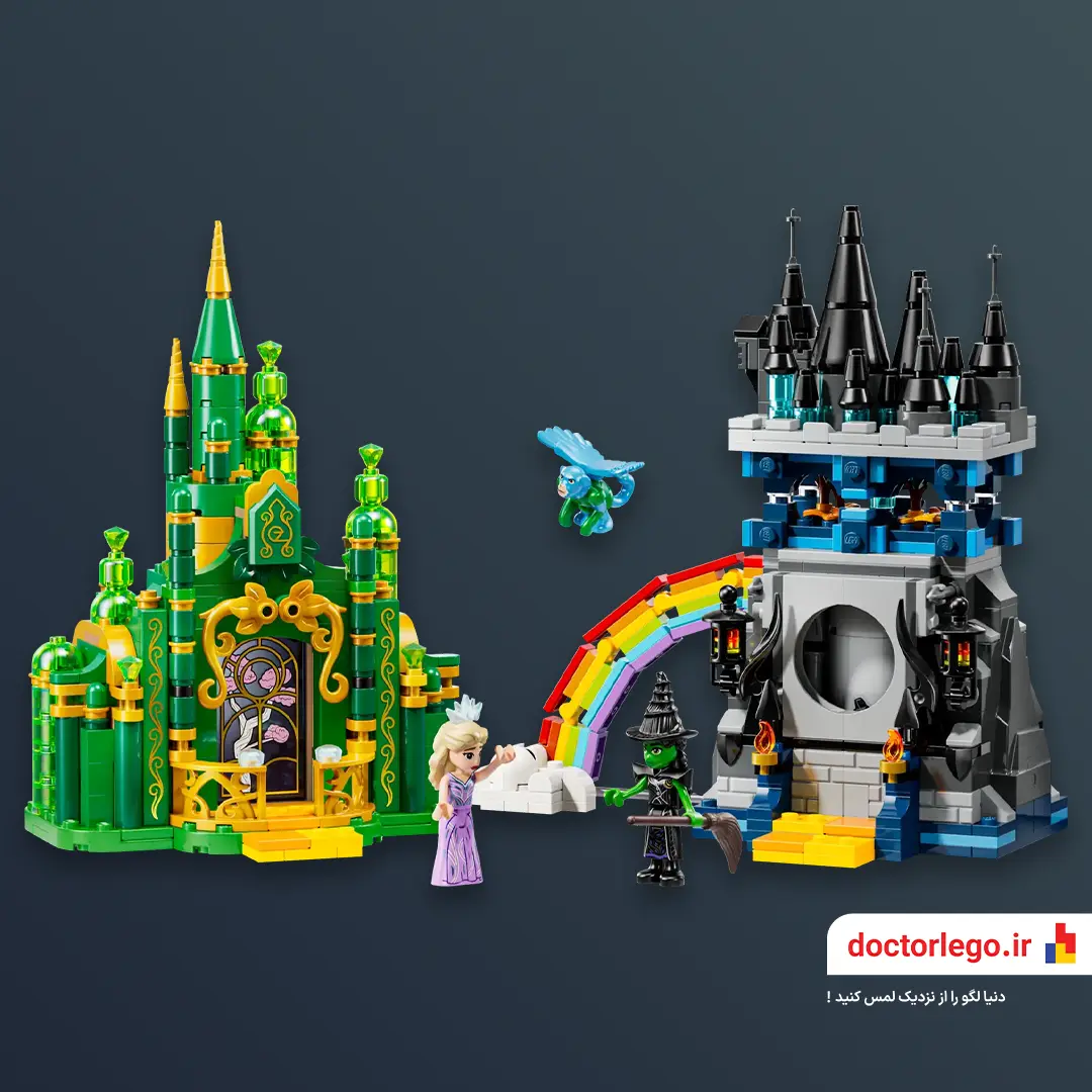 این ست، از مجموعهی جادوگر شهر اُز و سری لگو Disney Wicked هست؛ با 860 قطعه، یه قلعهٔ بلند با رنگ غالب مشکی-زمردی، همراه با برجها، دروازه متحرک، جزئیات طلسمی، پنجرههای شیشهای، و یک پل متحرک.